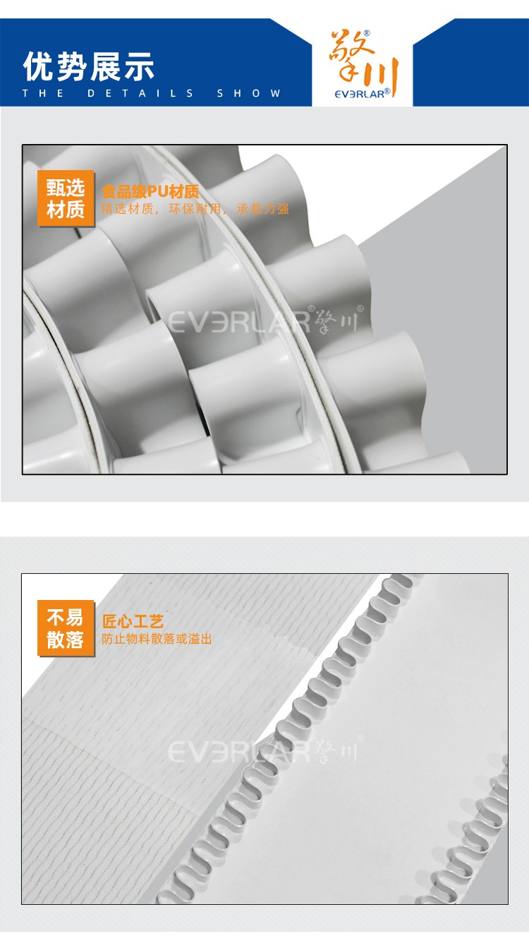 • 產品名稱:白色PU輸送帶加裙邊食品級耐油食品醫(yī)藥分揀輸送機皮帶廠家定制