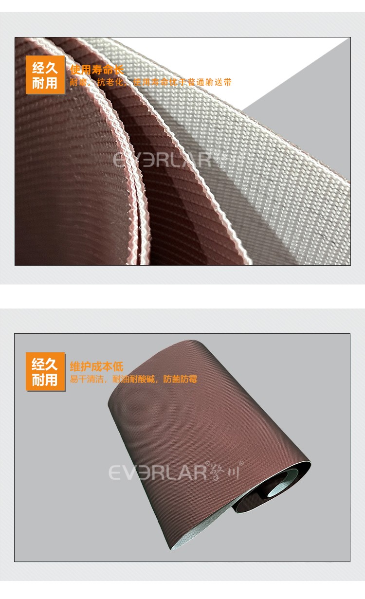 抗拉強(qiáng)度高、曲饒性好、輕薄韌、耐磨耐油、易清洗、防滑